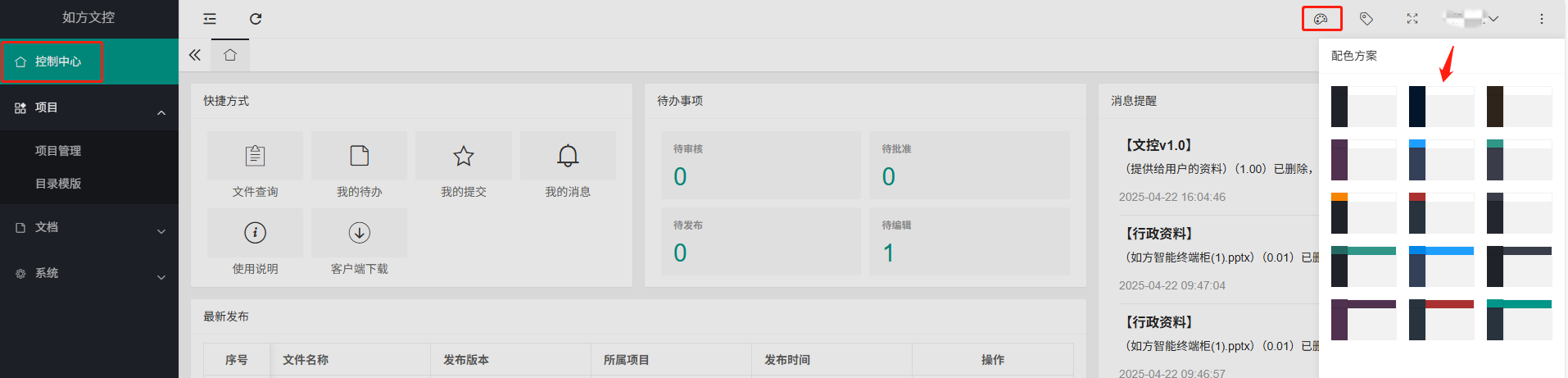 在控制中心界面,可进行文控的配色方案挑选,选择你喜欢的颜色。